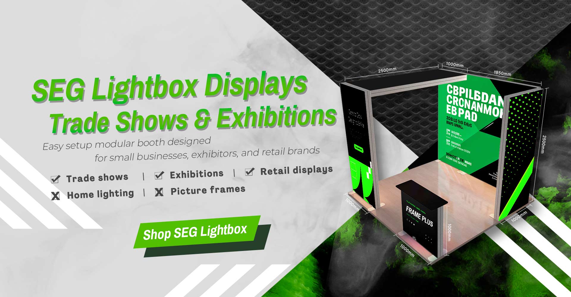 With FramePlus, you can create the perfect booth for any event by using our modular system. This system can adapt to your needs. The core system of us is the toy-like modular light box banners, which the Silicone Edge Graphics (SEG) work with.