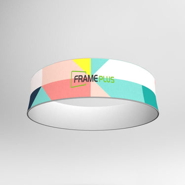 The 8ft Ring shaped overhead hanging banners can be printed single-sided or double-sided with the custom graphics of your choosing. Additionally, you can add a blank / unprinted fabric bottom to the display or extend your graphic to include a custom printed bottom.