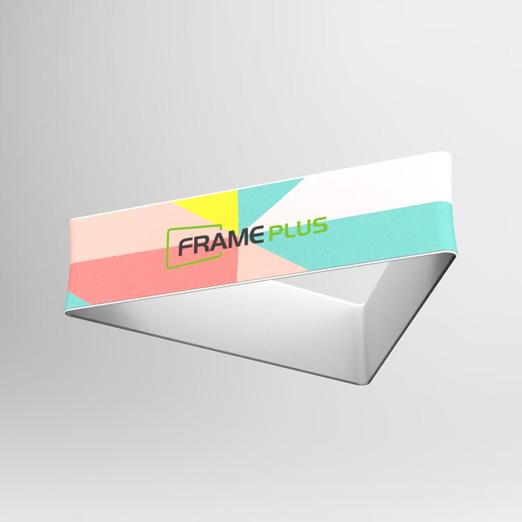 The FRAMEPLUS® Formulate Essential line of trade show ready hanging signs is designed using lightweight collapsible framing, vibrant tension fabric graphics and competitive pricing.  These ceiling-mounted hanging displays are available in three shapes (circle/ring, triangle, square).  To assemble, simply snap together the aluminum tubes, slide the dye-sublimated stretch fabric skin over the display frame and zip closed for a professional wrinkle-free finish.  If different sizes or shapes are required, shop our full selection of trade show hanging signs or contact us for custom displays.