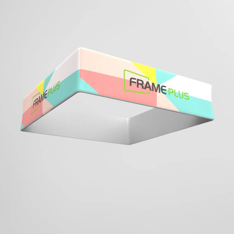 The FRAMEPLUS® Formulate Essential line of trade show ready hanging signs is designed using lightweight collapsible framing, vibrant tension fabric graphics and competitive pricing. These ceiling-mounted hanging displays are available in three shapes (circle/ring, triangle, square). To assemble, simply snap together the aluminum tubes, slide the dye-sublimated stretch fabric skin over the display frame and zip closed for a professional wrinkle-free finish. If different sizes or shapes are required, shop our full selection of trade show hanging signs or contact us for custom displays.