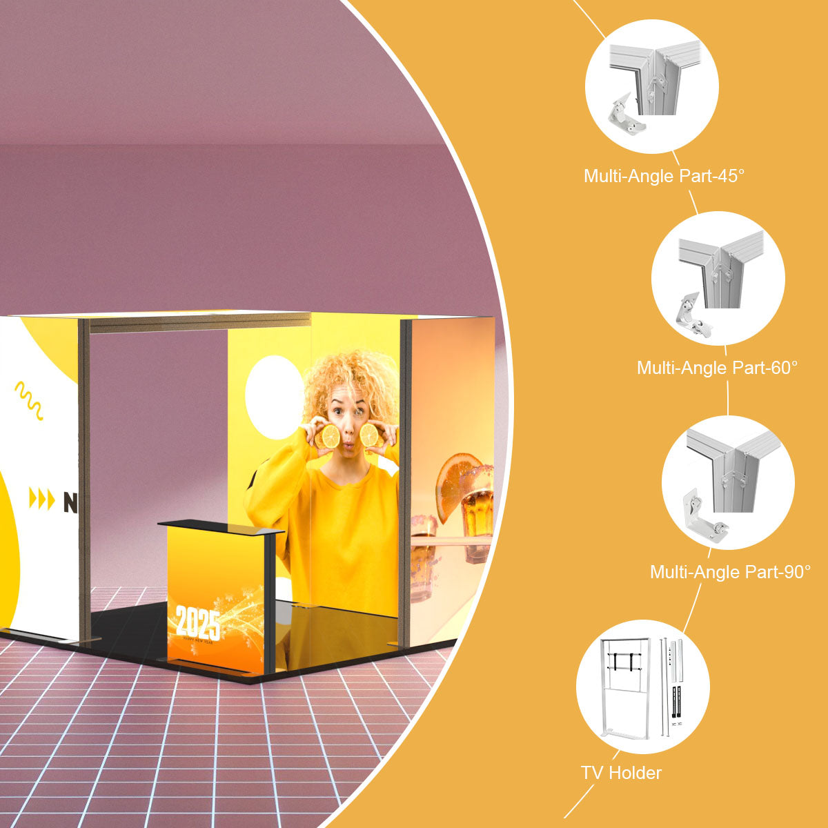 Frame Plus provides a variety of light box booth solutions with different shapes. You can also contact online customer service for customized solutions. 10*10ft seg exhibit booth/10*20ft light box booth/20*20ft light box stand can be used in different scenarios such as trade fairs, corporate offices, community events, shopping mall promotions, etc.