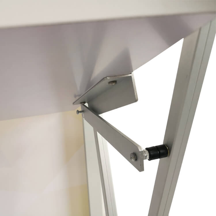 The Hop Up Counter is easy to assemble and no tools are required. The frame simply opens out and pops into place with the fabric graphic already attached. The countertop can then be slotted into the frame and the internal shelf attached.
