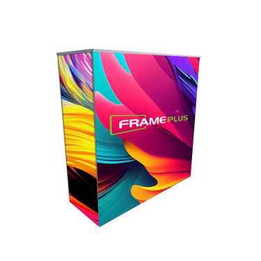 FRAMEPLUS® Hop-Up Fabric Counter is a lightweight and portable tension fabric counter. Ideal for use at events and exhibitions, retail stores and showrooms and as a pop up display table.