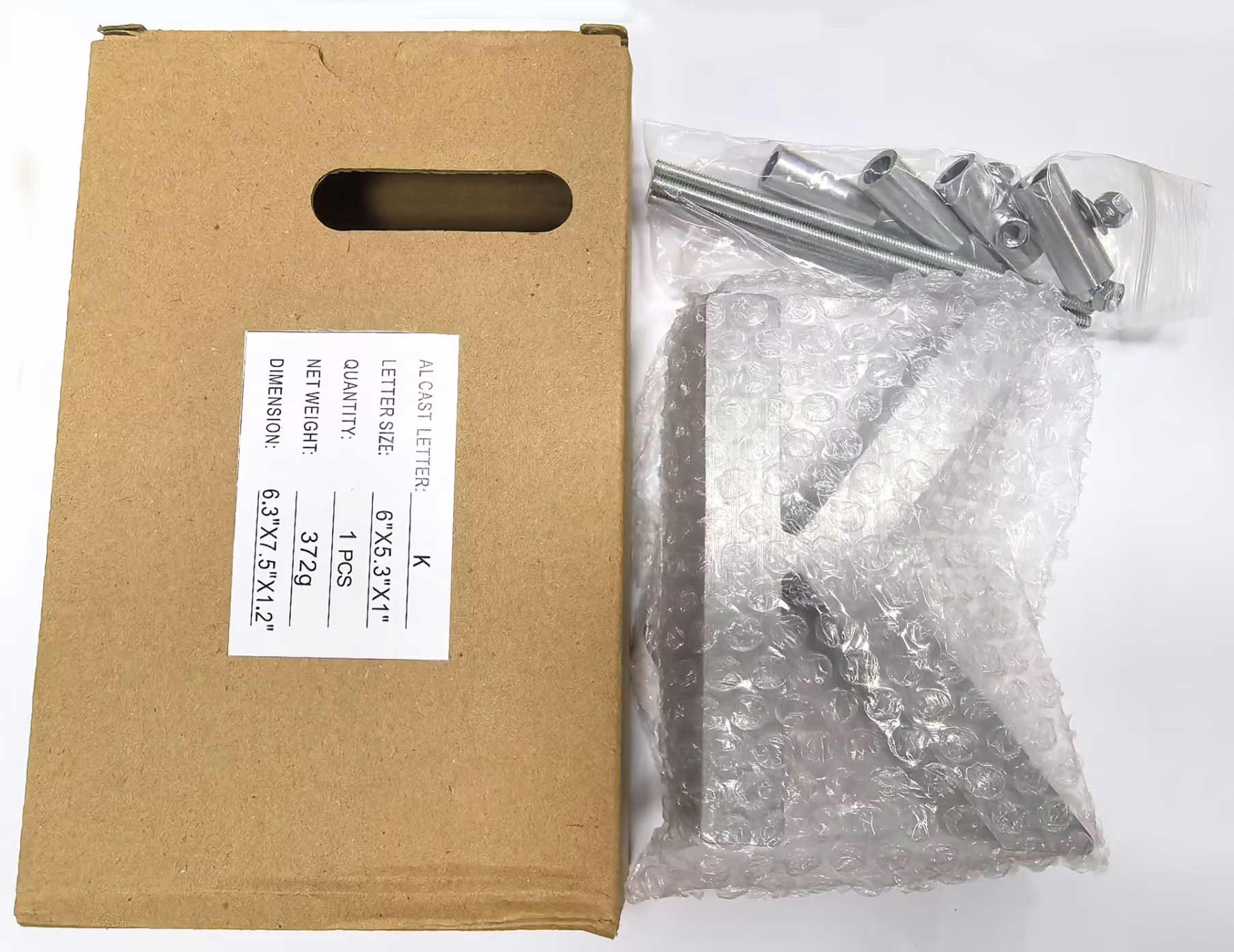 | Product | Aluminum Letters Size | Package SIze | Weight(g) | Number of screw kits |
