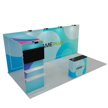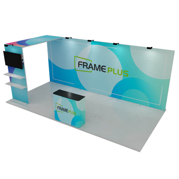 FRAMEPLUS® Foldable SEG Fabric Display features a lightweight and reliable folding frame and colorful stretch fabric patterns. The L-shaped shape has a wider field of view, with a TV shelf and spotlights, which can make your brand appear more professional and influential at the event. Unlike other background boards, which are bulky and cheap, this product only needs to unfold the bracket to lock firmly, the foot is stable and not easy to deform, and it can be successfully assembled without any tools, saving time and effort. The effect is not inferior to the light box booth, and more importantly, the price is very competitive, suitable for small businesses with limited budgets!