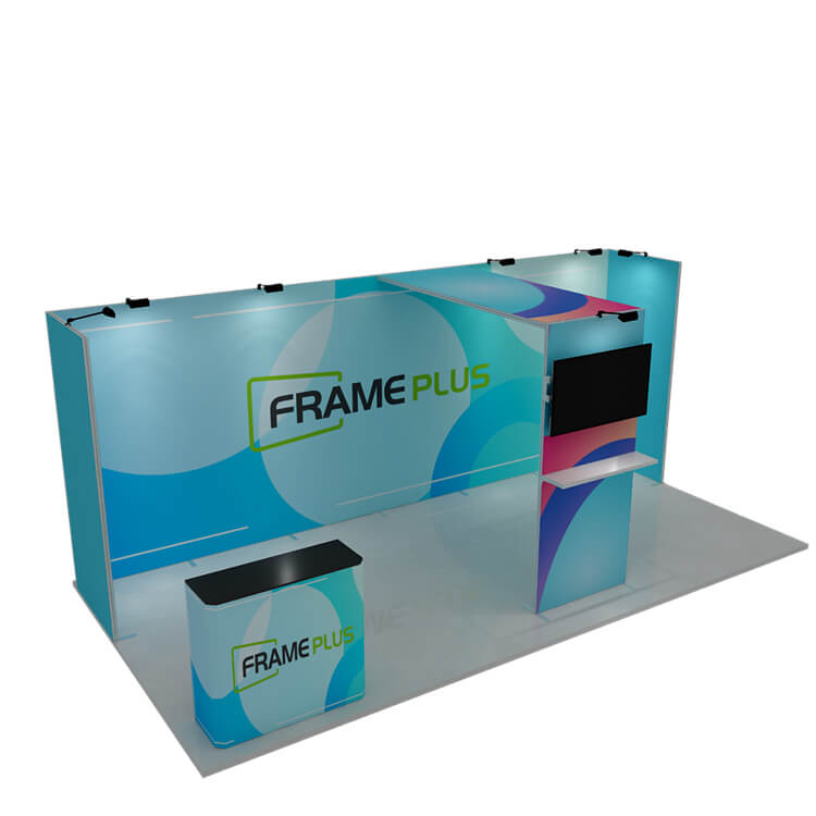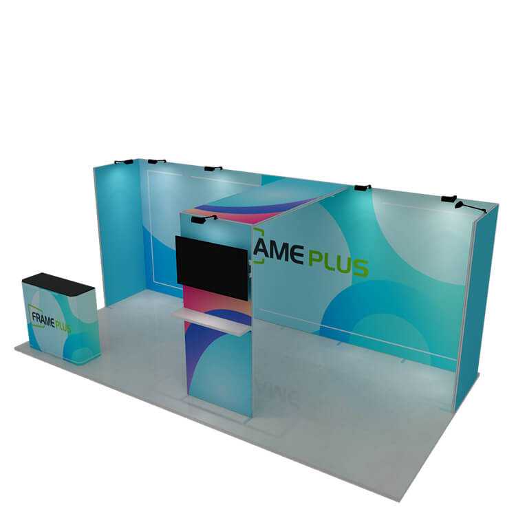 FramePlus®'s folding fabric frame booth is widely loved by customers for its lightness and easy installation. Compared with light box booths, folding fabric frame booths are more affordable and suitable for many small business exhibitors who want to participate in an event or a trade show temporarily. Its effect is not inferior to that of light boxes. It is equipped with spotlights and silicone edge graphics, which can help you stand out in the event! Let's say goodbye to the bulky and difficult to install products in the past. Modular design is the big trend!
