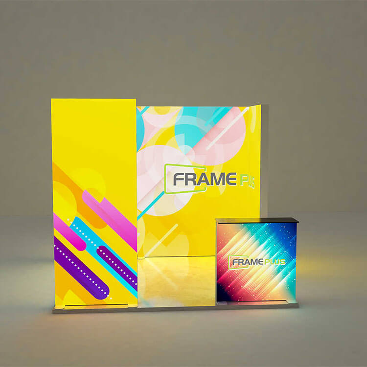 FRAMEPLUS® LED Lightbox Freestanding Exhibition Backwall is comprised of two or more FRAMEPLUS® LED Fabric Lightboxes, to be configured in a display.
