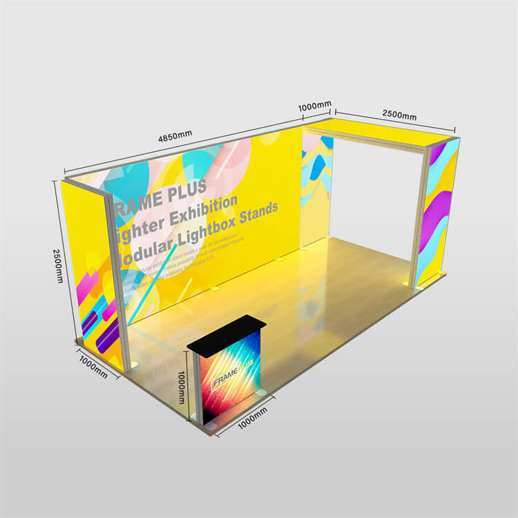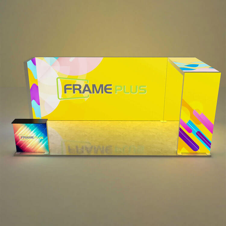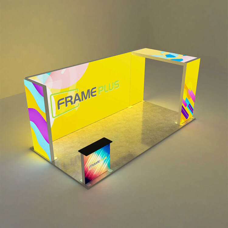3*6m/10*20ft The modular exhibition stand is easy to store and can be easily assembled without tools.Get a modern trade show display with FramePlus SEG Lightbox System 3. Features flawless SEG graphics & vibrant LED lightbox display. Easy assembly. Fast CA ship.